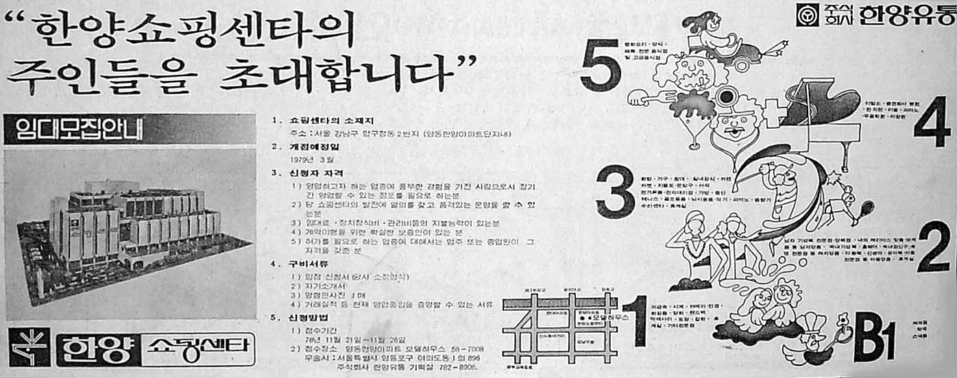 한양쇼핑은 지금의 갤러리아백화점이다.